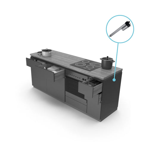 Linear actuators in cabinets and counters enhances usability and accessibility.