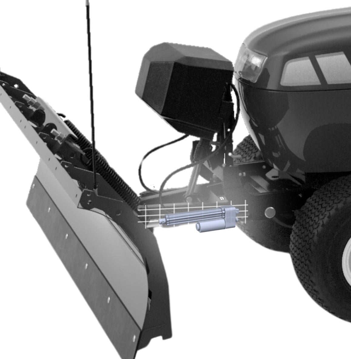 Electric linear actuators raise and lower the cutting blades to the optimal height for mowing.