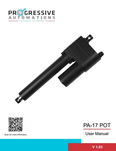 The PA-17 Heavy Duty Linear Actuator with potentiometer feedback provides cost-effective high force capabilities. The stainless steel shaft accompanied by metal gears allows it to push and pull up to 2000 lbs, and hold up to 4000 lbs. The environmental protection rating provides a versatile unit able to withstand dust, water, and harsh environments. The heavy-duty actuator is the only unit in our line of products with adjustable limit switches. This feature allows the user full control over where to start and stop the actuator. The added potentiometer allows for positional feedback when using compatible control systems. If you do not require potentiometer feedback on this model, check out our PA-17 base model here!